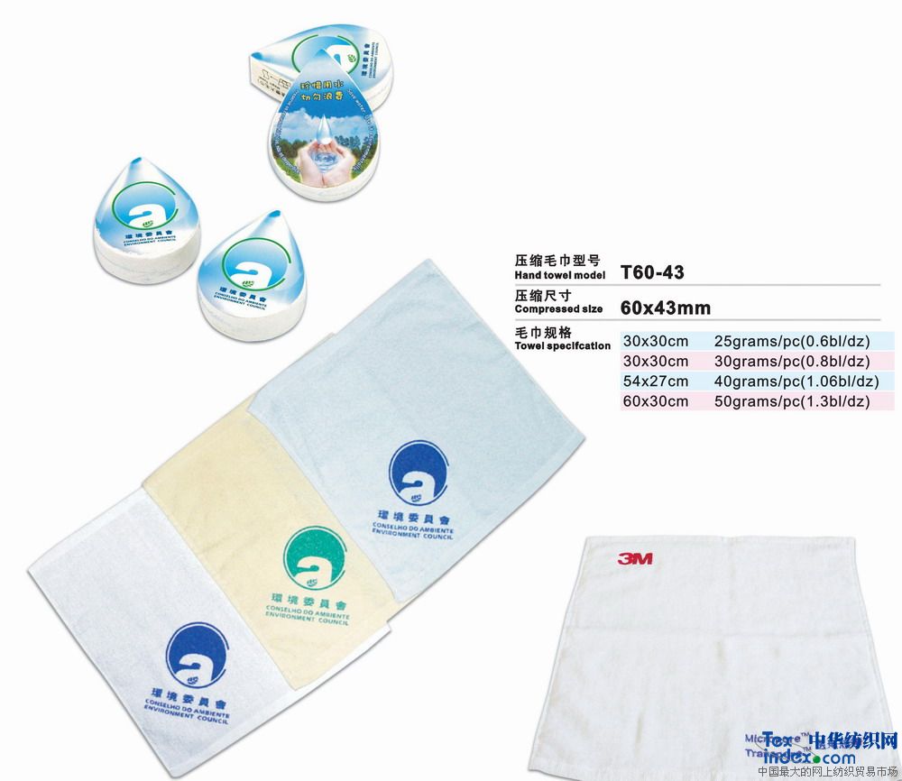 高級環(huán)保壓縮毛巾是二十一世紀的高科技成果、采用100%純棉經(jīng)高溫壓處理而成的新一代產(chǎn)品。放入水中浸片刻即可張開使用。本產(chǎn)品新奇獨特,干凈衛(wèi)生,產(chǎn)品企業(yè)形象宣傳極具效力。廣泛用于廣告宣傳界、酒店、旅游公司等。